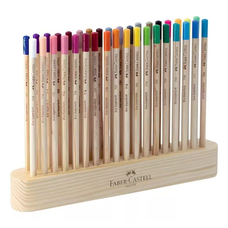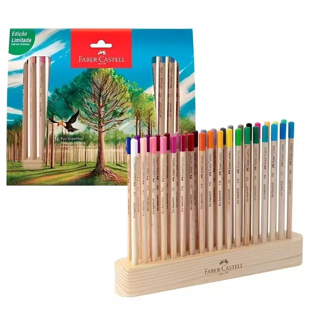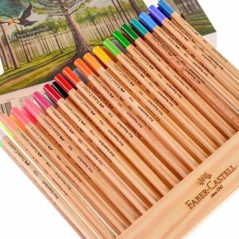 Los lápices SuperSoft Natural edicion han sido fabricados utilizando exclusivamente pigmentos de alta calidad.- El modelo SuperSoft tiene colores más vivos y una cobertura excelente.- Clásicos lápices de color con cuerpo redondo con minas súper suaves y colores súper brillantes para superficies blancas y negras. – 36 EcoLápices redondos SuperSoft de color con funda tejida- Colores súper suaves más vivos y con excelente cobertura, sobre papeles claros y oscuro- Proporciona la máxima comodidad al pintar- Fabricado con madera 100% reforestada, certificado por el FSC: respeto total por el medio ambiente- Diseño exclusivo.